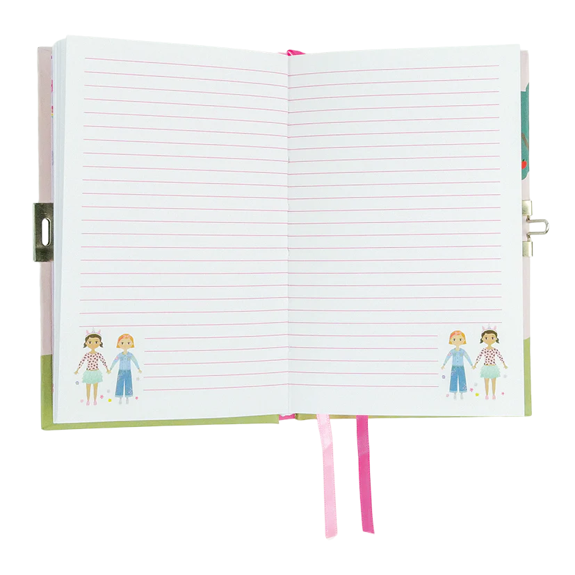 Deník je vybavený visiaci̇m zámkom a kľúčom, vďaka čomu zostanú všetky tajomstvá v bezpečí. Vo vnútri nájdete hárok zábavných nálepiek s motívmi víl, jednorožcov a ďalších rozprávkových bytostí, ako aj záložky s viacfarebnými stuhami. Strany sú linajkové, ideálne na písanie, kreslenie či zapisovanie zážitkov.