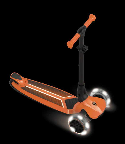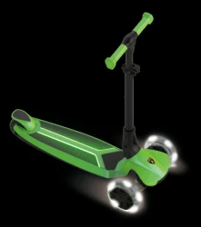 Kolobežka je vybavená svietiacou nášľapnou plochou a kolieskami, ktoré svietia počas jazdy (bez potreby batérií). Riadidlá sú výškovo nastaviteľné v 4 úrovniach, takže sa prispôsobia rastu dieťaťa.